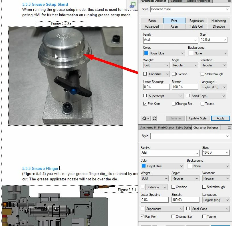 i am geting inconsistent fonts in framemaker, see this page i attached an attachment the top Title 5.5.3 Grease Setup Stand appears bolder and darker then lower one 5.5.3 Grease flinger . anyone know why this could be? I have related font style in the snip. thanks!