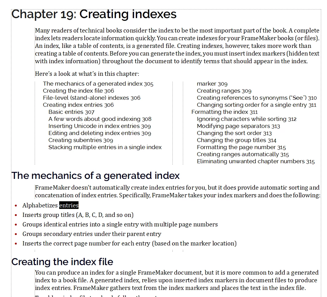 Some of these chapters are have lots of major subsection headings, and the TOC runs into a second page. This is obviously not ideal. If I can figure out a way to dual column the MiniToc so that the frame holding it adjusts its vertical space without having the rest of the file in dual column or having to set up new tags so that the body of the doc is across both columns, that would be really, really nice.