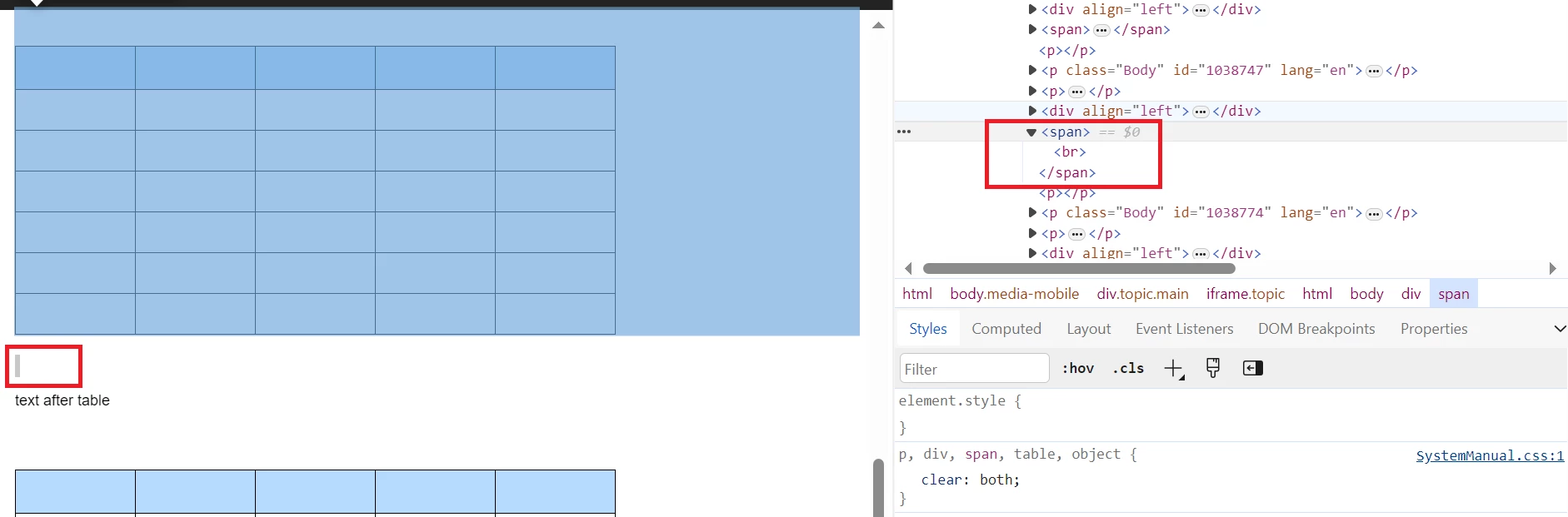 Line Break (br) inserted after table in Responsive HTML5
