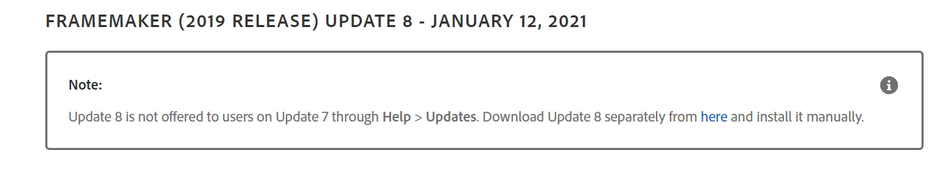 Link to FrameMaker 2019 Update 8 is broken on the Fixed issues in FrameMaker (2019 release) page
