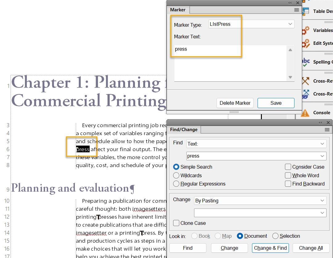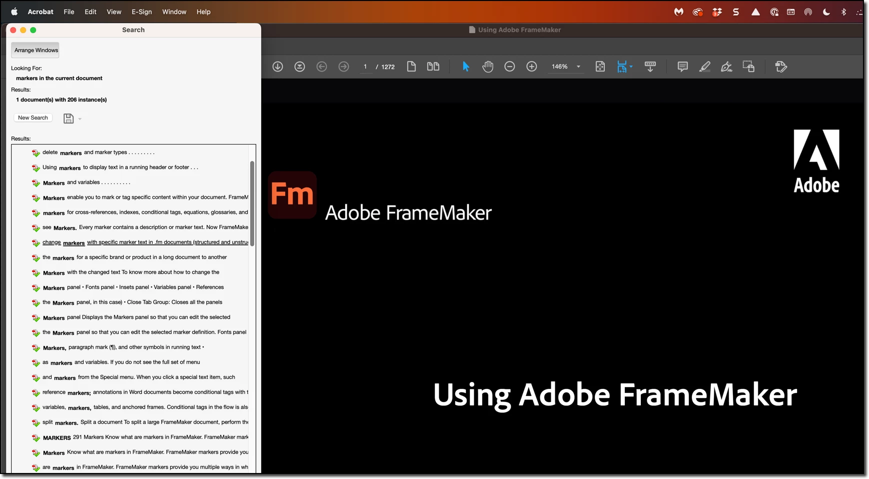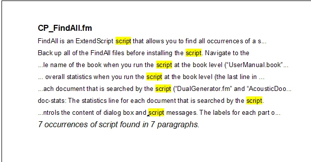 Is there a way of getting from FM (or PDF) a detailed list of the appearances of a word?