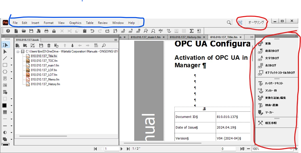 Mix of languages in FrameMaker UI