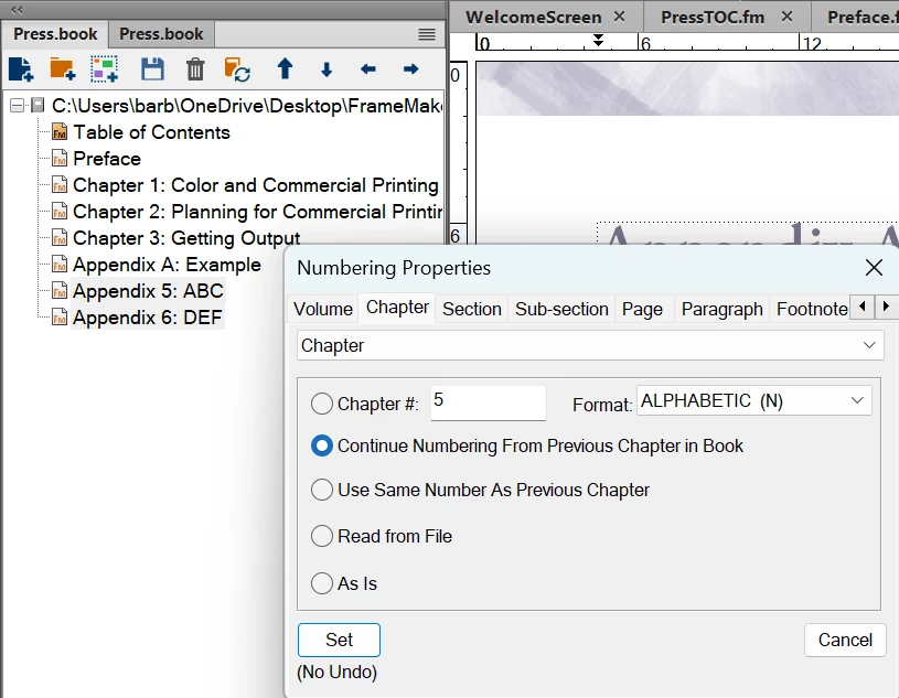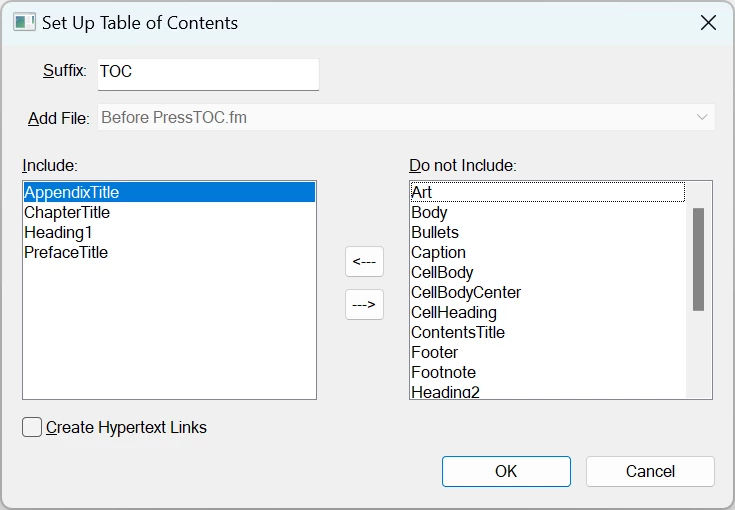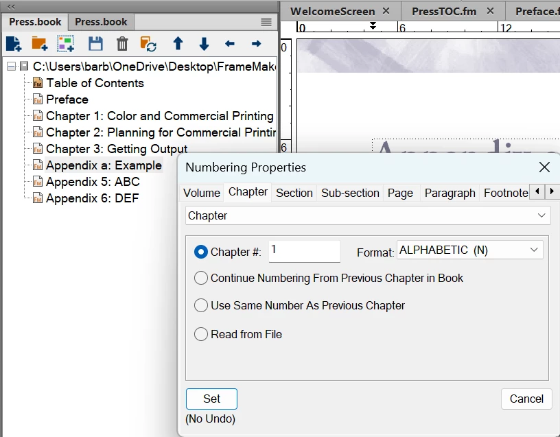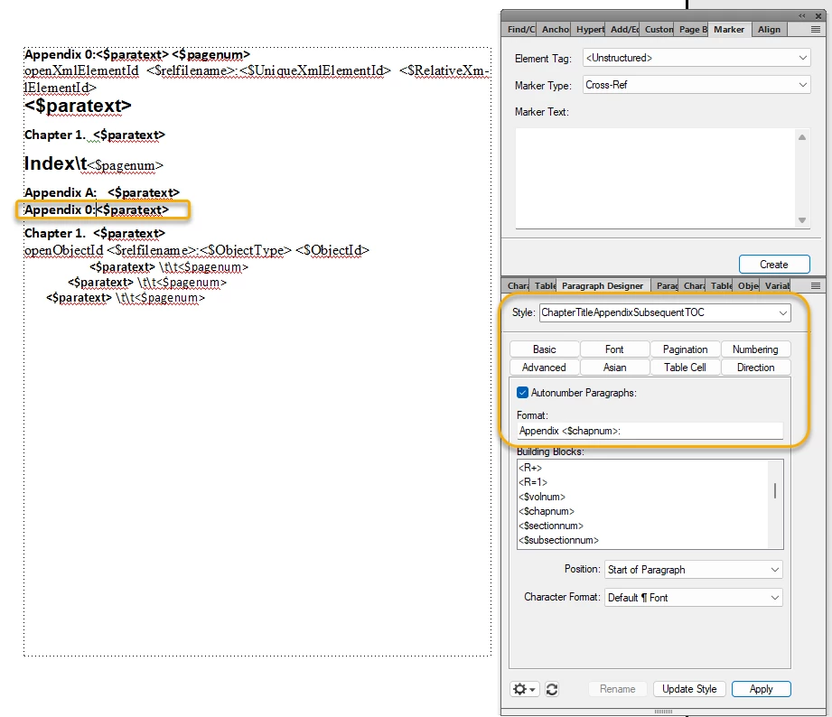 My FrameMaker appendices aren't showing properly in the TOC (using current online version)