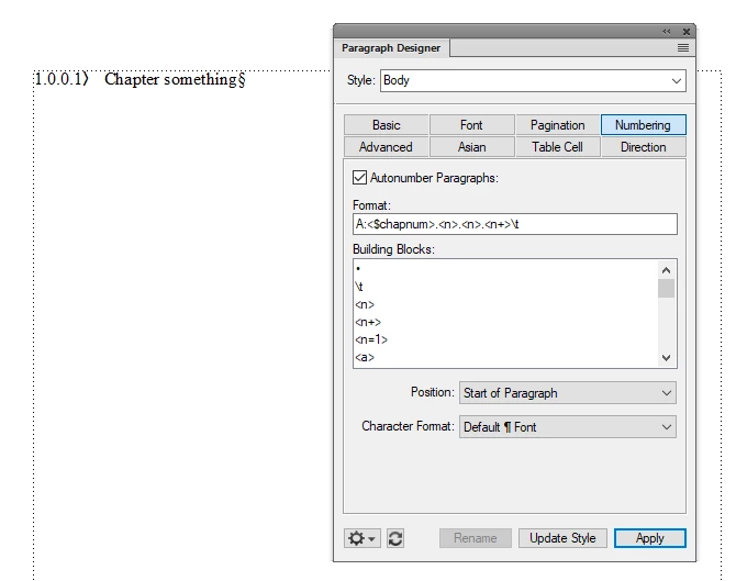 Here's the FrameMaker rule that tripped you up: you can have a multiple numbering series in a single file, but you are only allowed to have one unnamed series. All other series need to begin with a character and a colon to differentiate them from each other. This is called a Series Label.