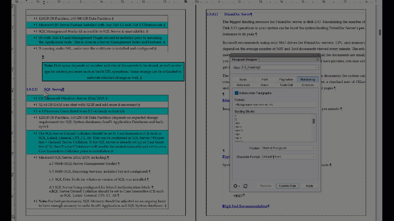 In your document, you have numbered headings as one series, and you have an alphanumberic list as a second series. I added an L: to both of the paragraph styles in your list, and that took care of the issue. You could do it the other way, if you prefer: add an H: to your heading styles and leave the lists alone.