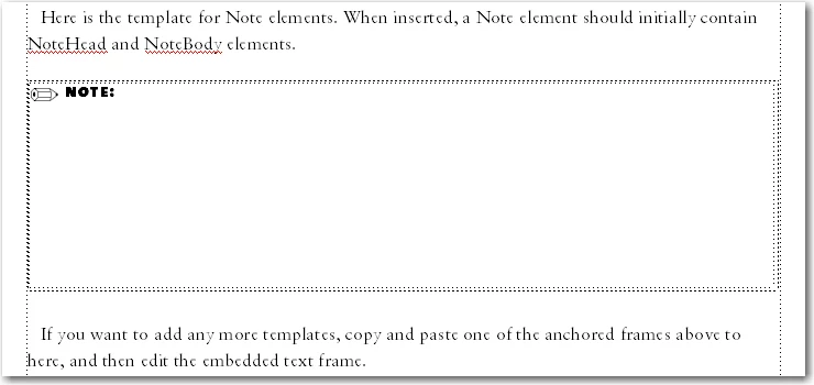 When you choose one of these attributes, it automatically inserts a graphic symbol (exclamation point, star, pencil, etc.). Then you choose the next child element, which creates a paragraph directly to the right of graphic symbol.