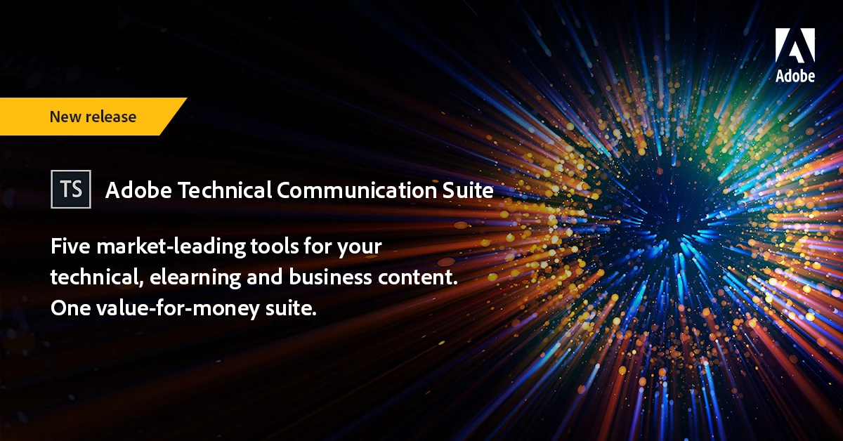 The new release of Adobe Technical Communication Suite is now available! Get the five industry-leading tools - Adobe #FrameMaker, Adobe #RoboHelp, Adobe #Captivate, Adobe Presenter, and Adobe Acrobat, all packaged in one single suite today.