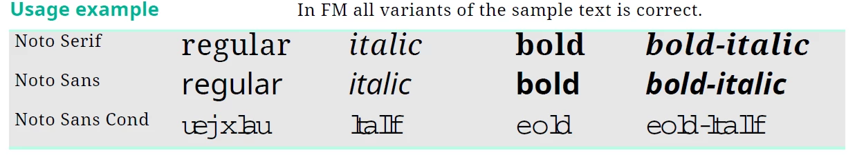 https://community.adobe.com/t5/framemaker-discussions/font-noto-sans-cond-does-not-behave-in-pdf-creation/m-p/11269787#M66680