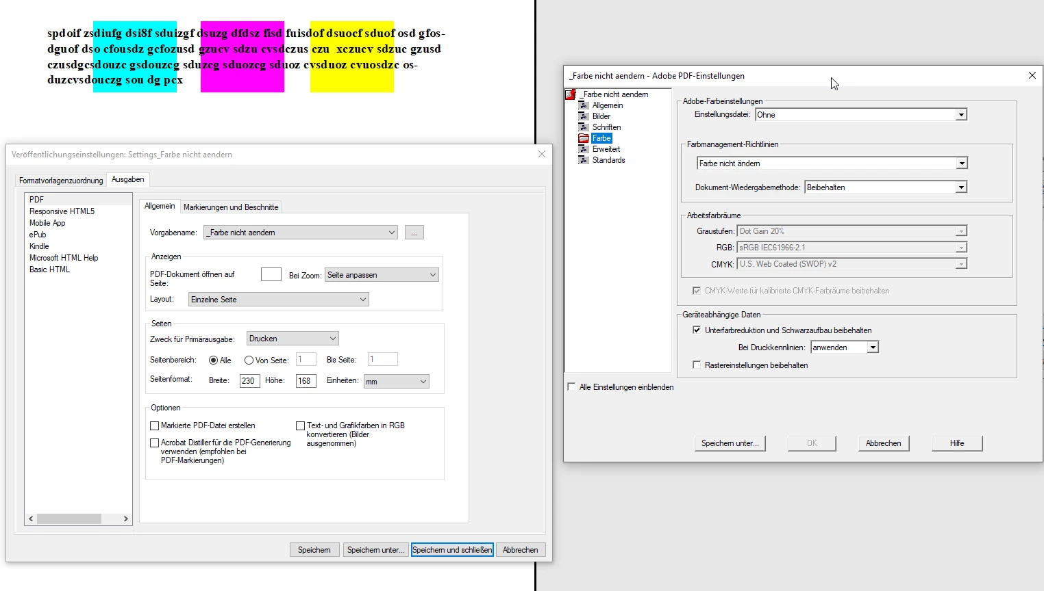 I also tried many different PDF settings, without and with using Distiller within the "Save as PDF" process and also "Printing to PDF" - nothing helped.