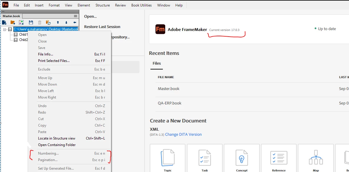 Scenario: I have a book with childbooks inside, childbooks contain .fm files such as TOC and Chapter. I want my TOC to start with page 0, but each other chapter start with page 1 everytime. I have set numbering for the .fm files separately to start with desired pages, and then set numbering properties in a childbook to "read from file". The problem is when I update the parent (main) book, the page numbering resets to 1 for TOC and continues 2, 3, 4... in other chapters.