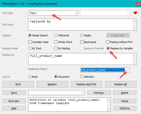 - It is not 'looked into' objects. Hence any formatting inside a variable (e.g. font change) or a table or anchored frame is not modified.