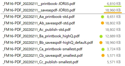 I would like to generate a PDF of a similar size to the PDF created by Distiller without losing photo quality by [Save As PDF] in FM2020. It would be very much appliciated if you advise me how to set it up or any hint to reduce the PDF file size.