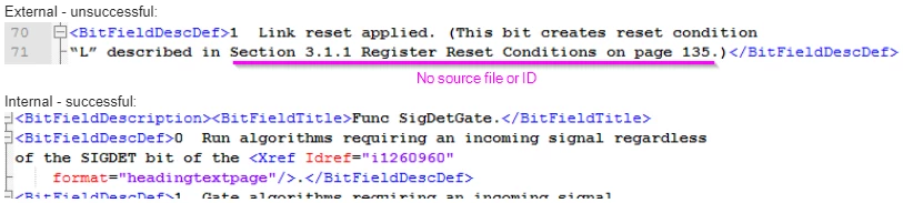 When I export the XML, there's no source file or ID for external cross references, but the internal cross references are getting saved in the XML.
