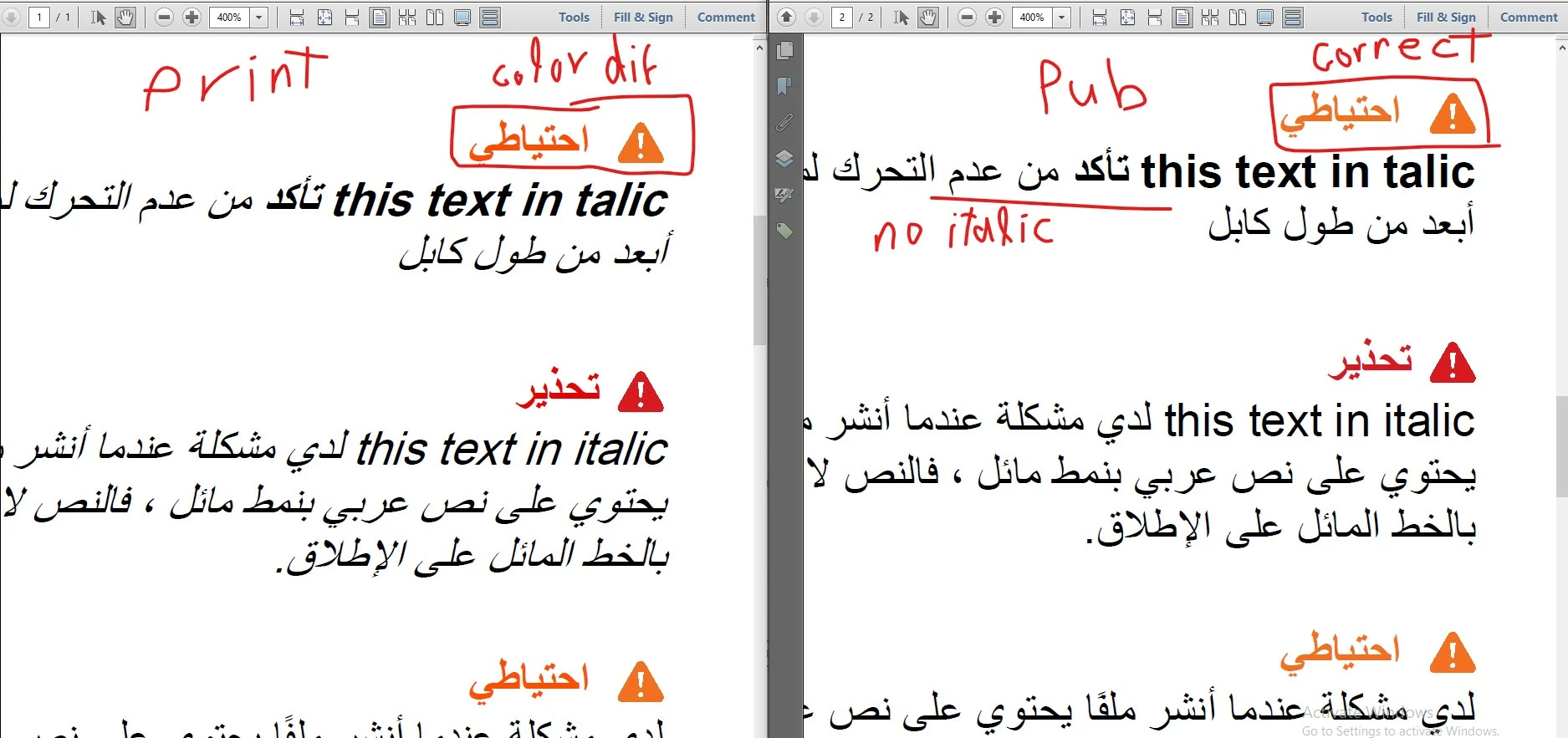 Problem Italic Arabic text when publish from FrameMaker 2019