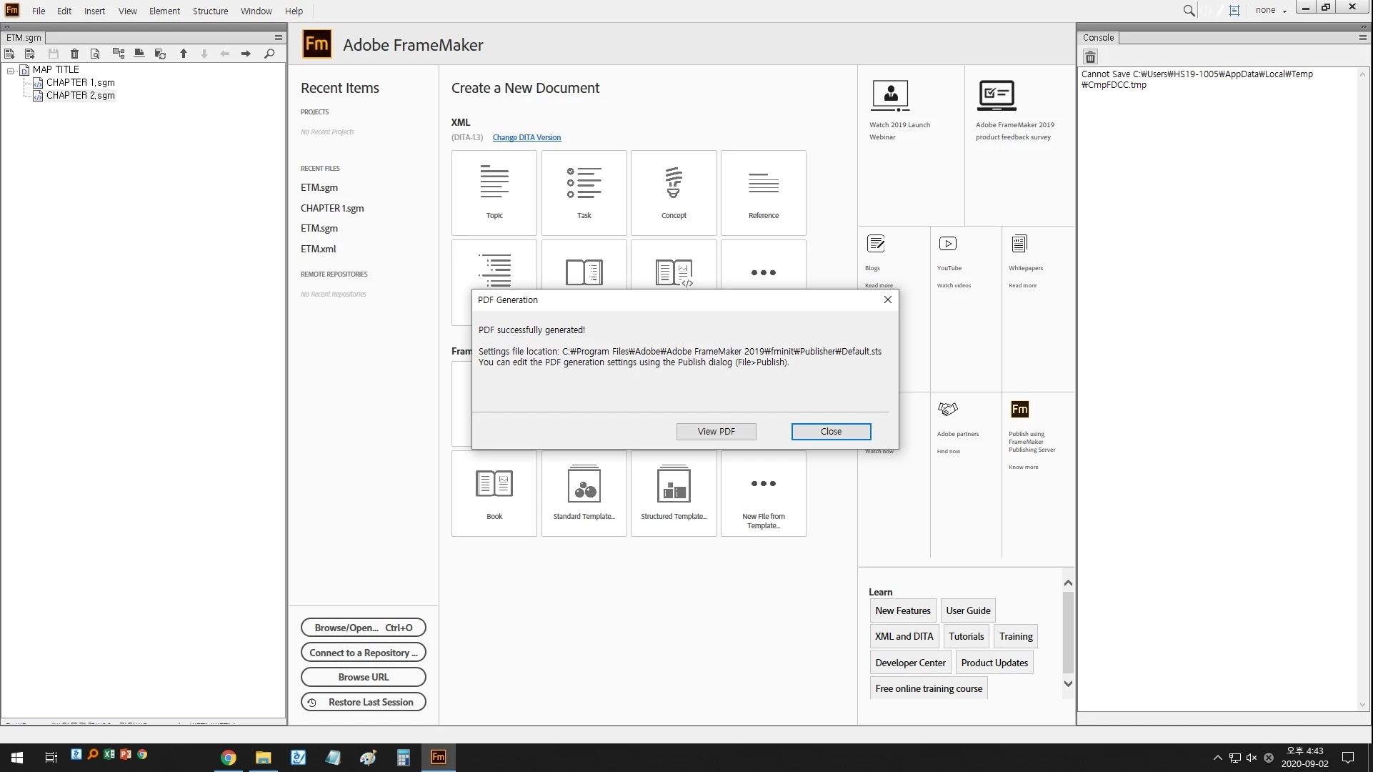 I'm using FM2019 and when I tried to convert XML and SGM format to PDF, it doesnt work.