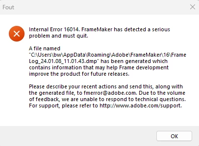 I use FrameMaker daily, and at the Custom Ruling and Shading function, I have conflicts, causing a critical error 16014 to appear on screen and then abruptly closing the program.