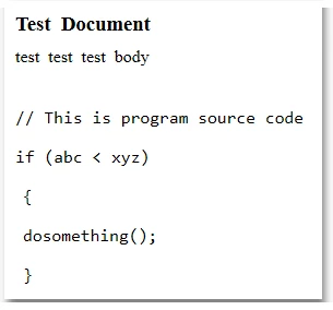 I created a simple test FM doc that contains some fixed pitch text which is supposed to be programming code. Eg:
