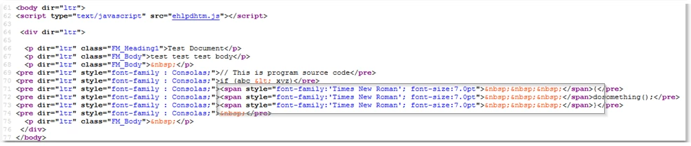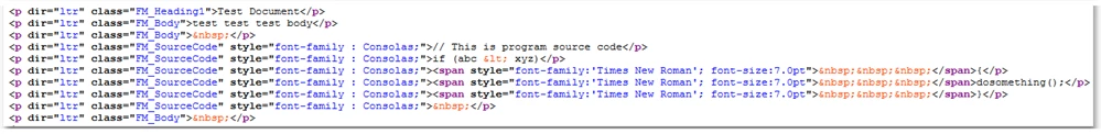Which also contains the unwanted span, plus unwanted inline styling for the font-family. Why didn't it put the font-family into the FM_SourceCode CSS class?