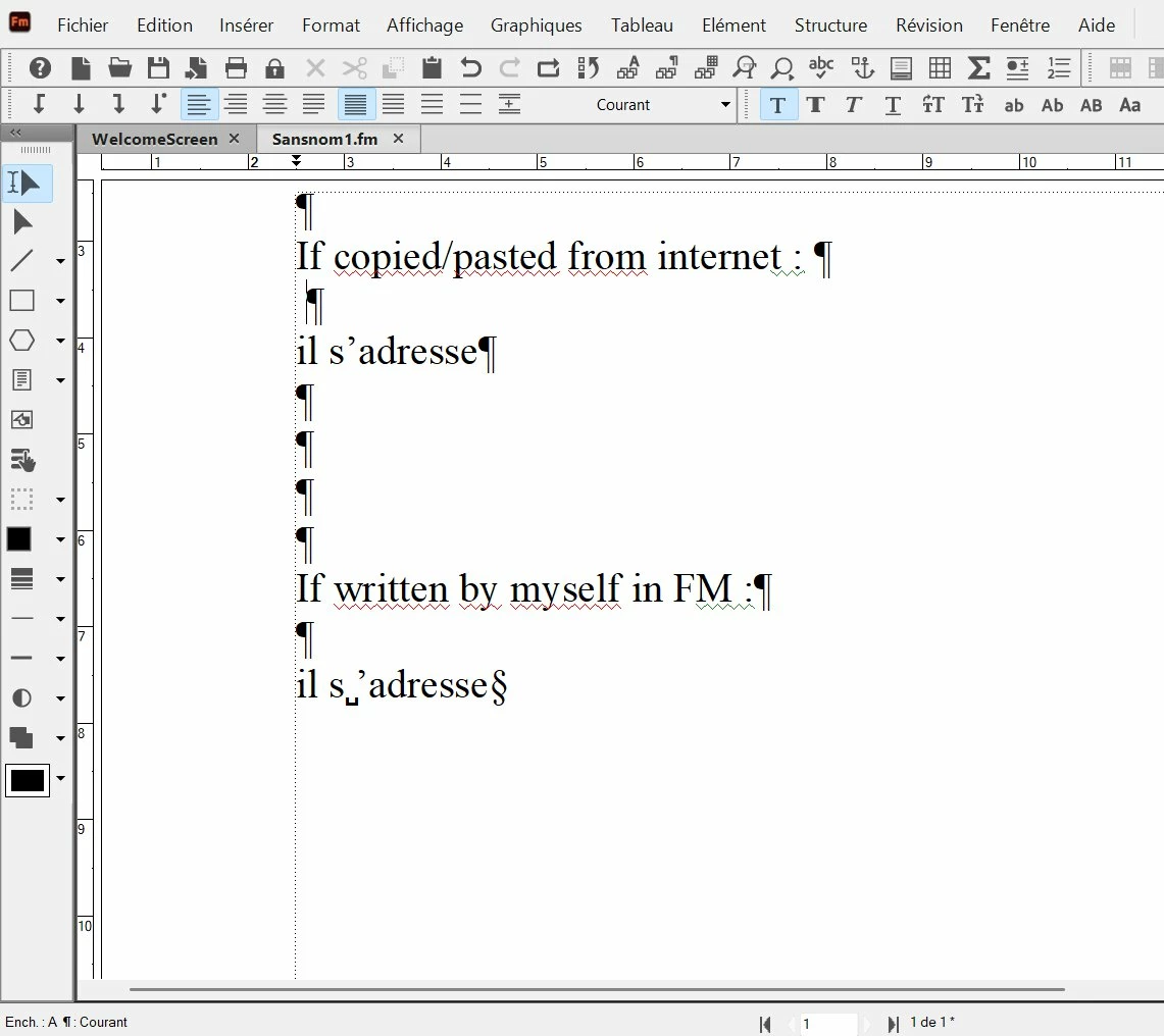 I have a display problem about apostrophe in french vesrion of FM. It is concerning the apostrophe position that is non correct if I write it myself inside FM :