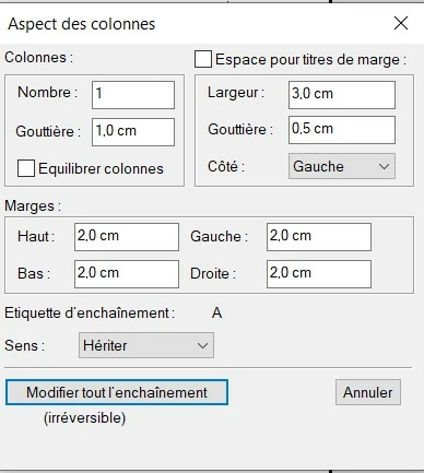 In Frame Maker for my FM document if I go in Format/page layout/columns, I have set a margin of 2 cm :