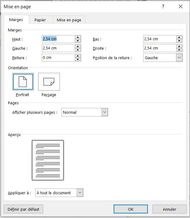 But, if I copy/paste the text of my FM document to Word, and if I go in the Word page layout, I have 2.54 cm as settings for the margins :
