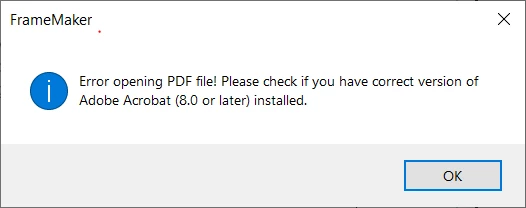 We just installed Acrobat DC with the Adobe Tech Comm Suite, and when we try to use the Save as Review feature, we get an error stating "Error opening PDF file! Please check of you have correct version of Adobe Acrobat (8.0 or later) installed." If we try to generate a PDF from the .ps file, Distiller comes up blank.