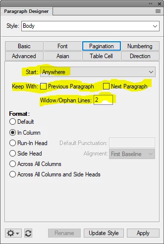 Click through your paragraphs and check the highlighted properties below to see what is preventing the content to start of the previous page.