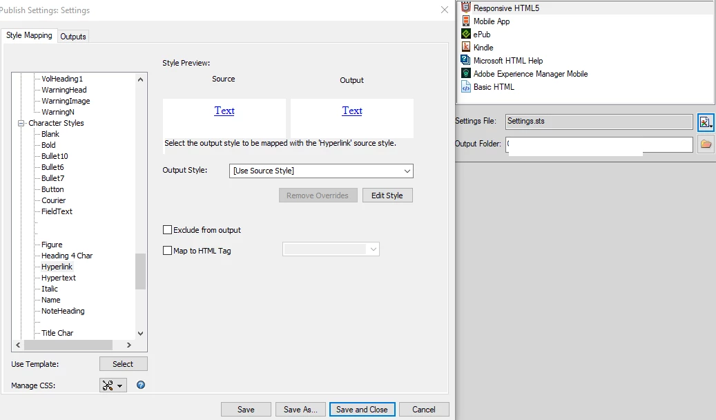 Is there a way to remove the underlines from hyperlinks created in HTML5 output?