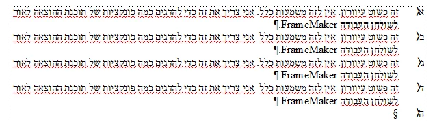 So I set up the whole thing in FM-13 (2015) which introduced RTL support. Here I can get what I expect:
