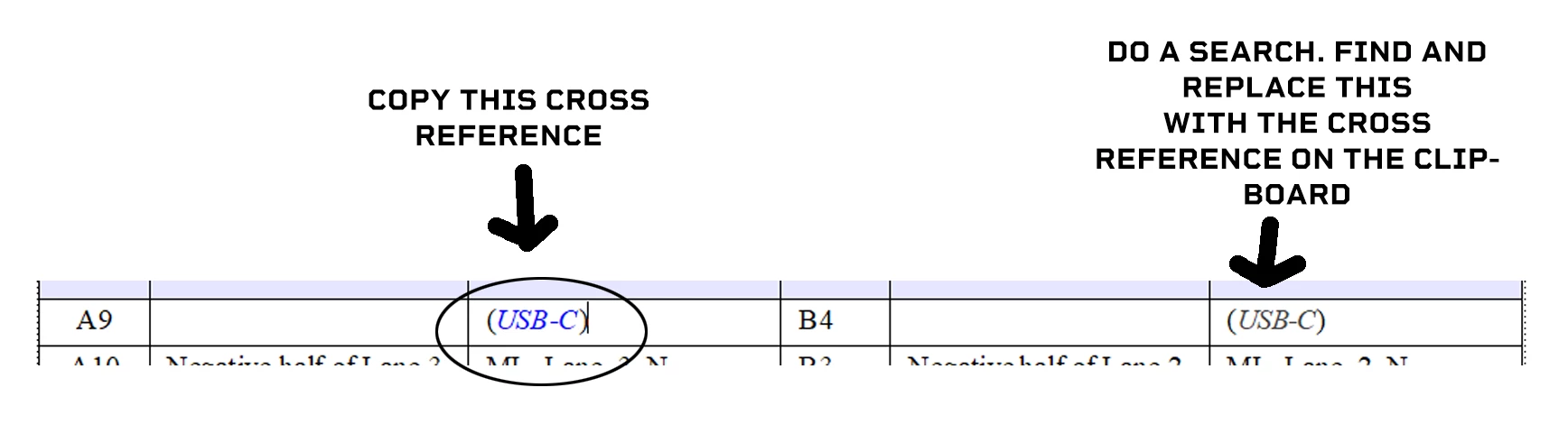 I need to, for instance, search for the term (USB-C) and replace it with the same term but cross referenced to a reference term.
