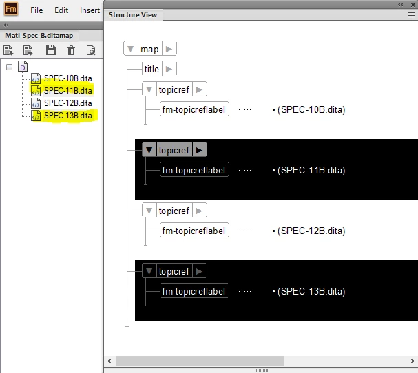 Selected files in ditamap