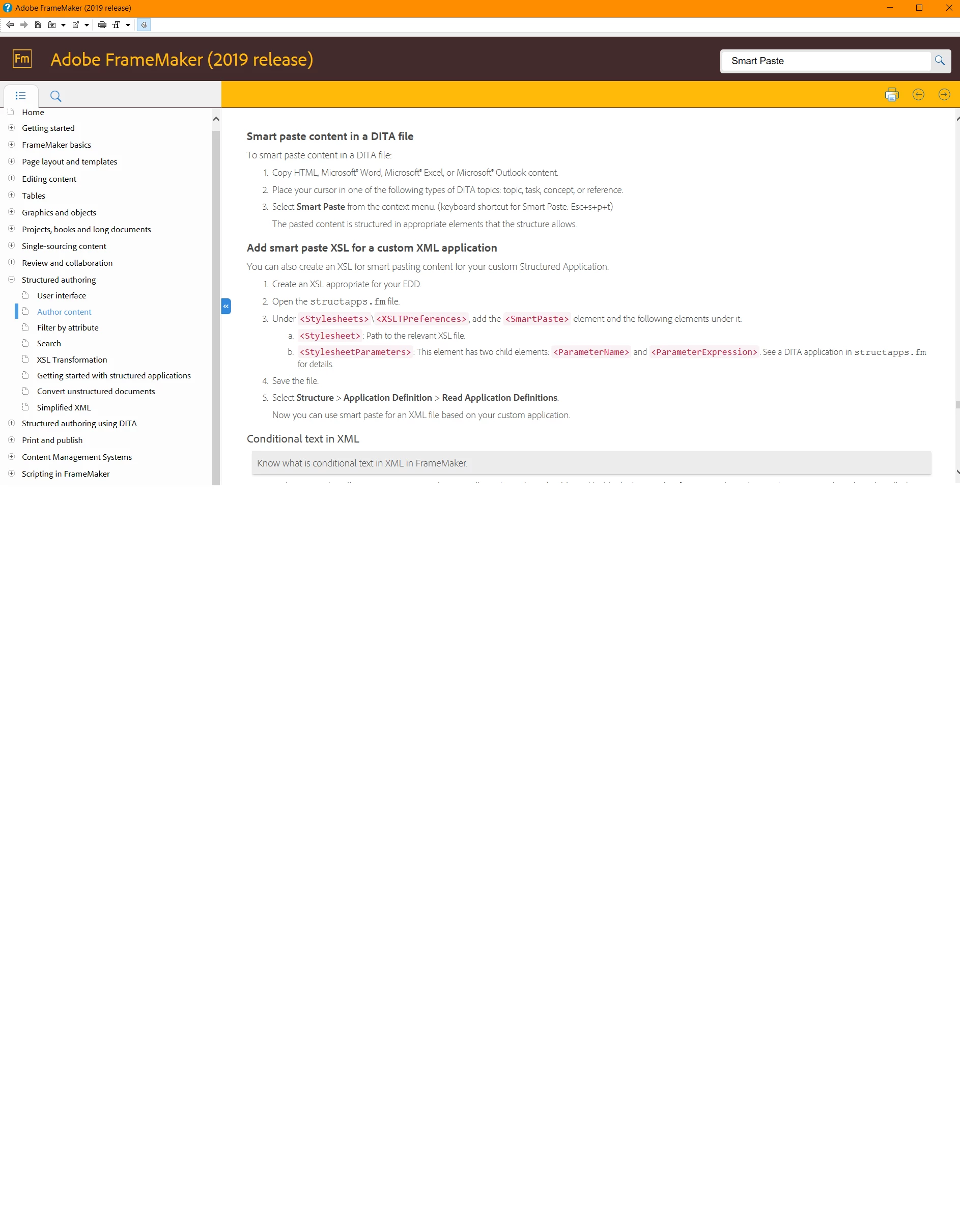 Smart Paste is not working on Framemaker 2019