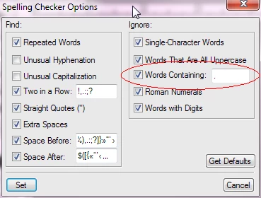 It seems odd that with Frame you can create an em dash (Alt+0151), but the spellchecker flags all words with an emdash (and no space between, which is the typographically correct way) as errors. Is there any way to make the spellchecker ignore words em dashes (or word pairs with an em dash) in between?
