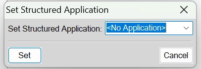 With the template opened, in StructuredTools > Set Structured Application…, when I try to set the structured application root element: