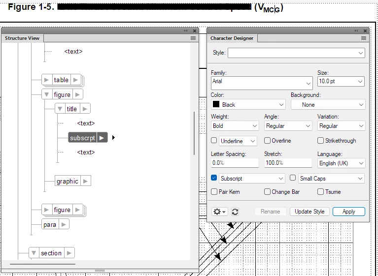 The subject publications contain numerous instances of subscript content, applied by wrapping in an element. Problem is, none of this content is captured in my generated lists (TOC, LOF, LOT). It all presents as upper case vice subscript. Yes, I can apply subscript directly to the list items in Frame, but when I do *whoosh* goes most of the hyperlink(s). Presumably, I'll then have to post-process the PDF and 'extend' what's left of the affected links in Acrobat Pro.