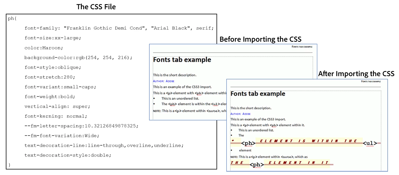 The Cascading Style Sheets (CSS) store the formatting information for the elements. Most advanced users are comfortable working with CSS to define the styling and formatting information for their content. FrameMaker gives you an enhanced CSS import feature that lets you import styling information directly from CSS. With support for the latest CSS 3 standards, you get more control over your content's style and presentation. In addition, you can import these CSS 3 formats directly into your structured document's EDD to create more presentable and good-looking documents.