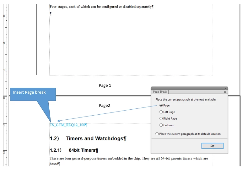 How to section [1.2 Timers and Watchdogs] still at page 2 when hide conditional tag (keep Page break)?