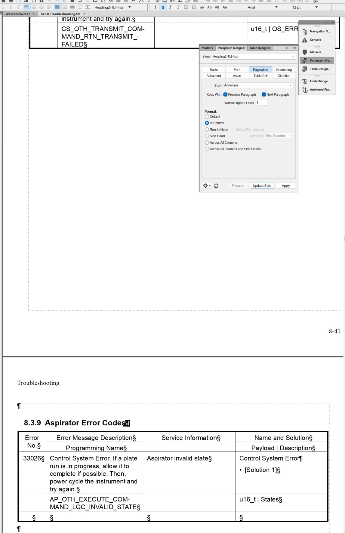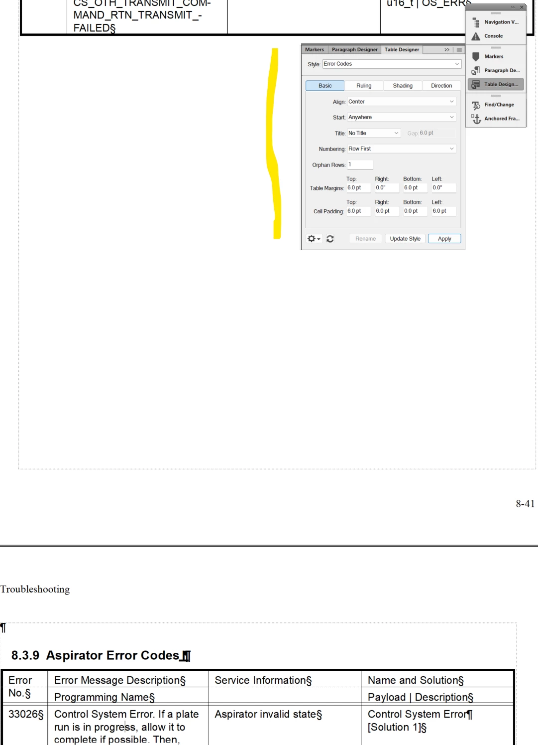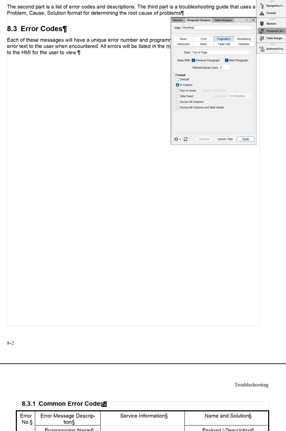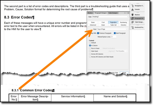 I'm mystified. I have an FM topic that lists a series of error code tables. It's organized something like this: