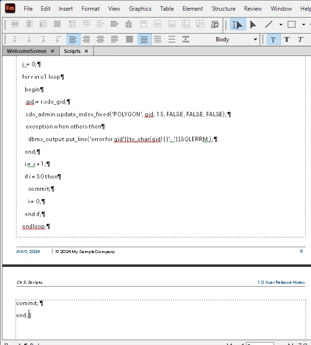 We are facing the issue of inserting a lengthy code in a Framemaker table.