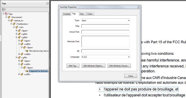 tagging a .pdf for language-awareness