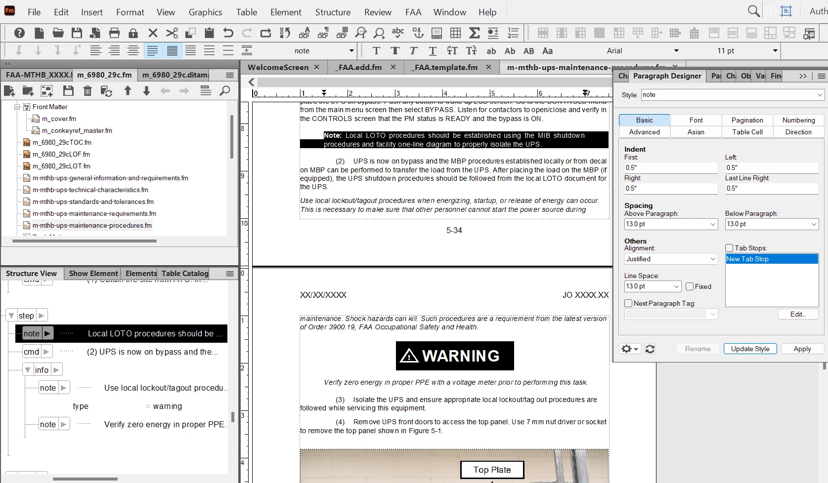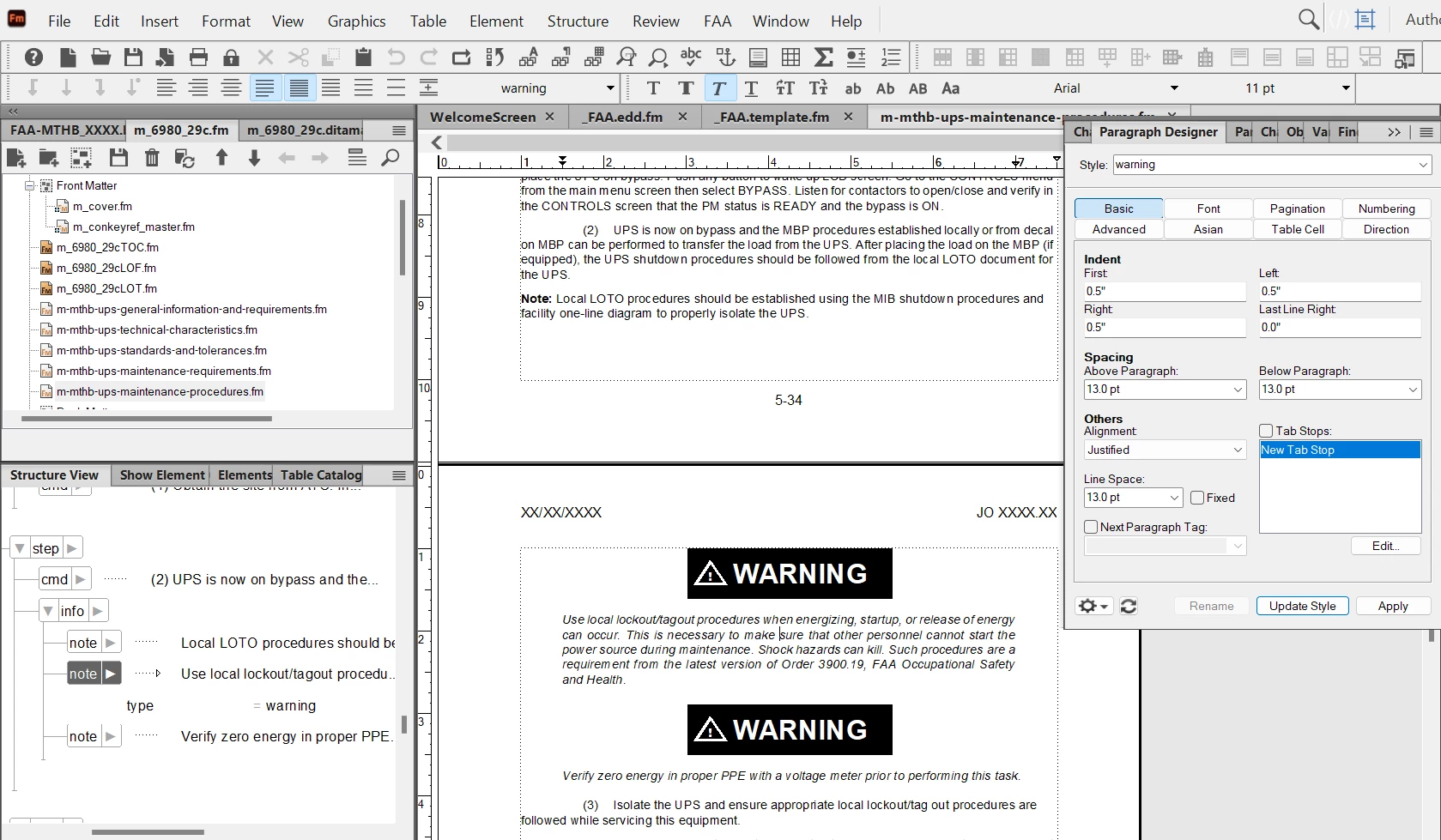 When converting a task topic to FrameMaker with a <note type="warning"> wrapped in an <info> element doesn't seem to flow down to the attribute type="warning (or caution)". Even when the note is selected, the Structure View still shows the parent step or substep element. My EDD includes: