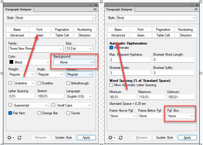 Hello, I'm trying to create text in the paragraph designer with a background color. I'm utilizing the numbering properties and it would be