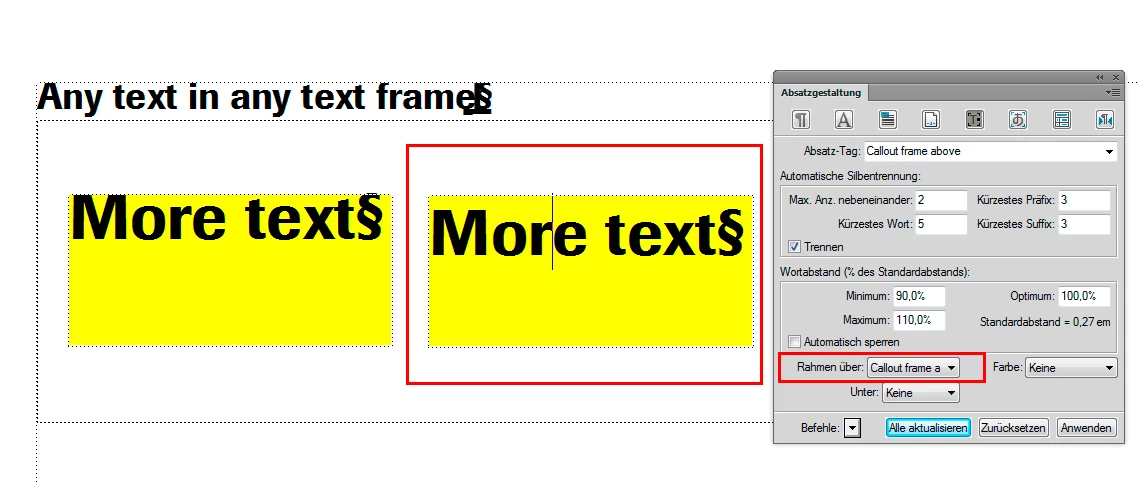 2. Next: In the paragraph format, enable this frame to be used as "frame above".