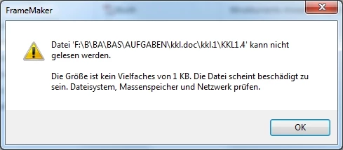 I got a message like "The size is not a multiple of 1 KB. The file appears to be corrupted...".