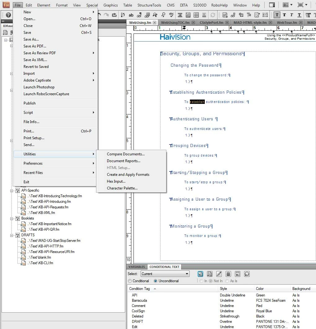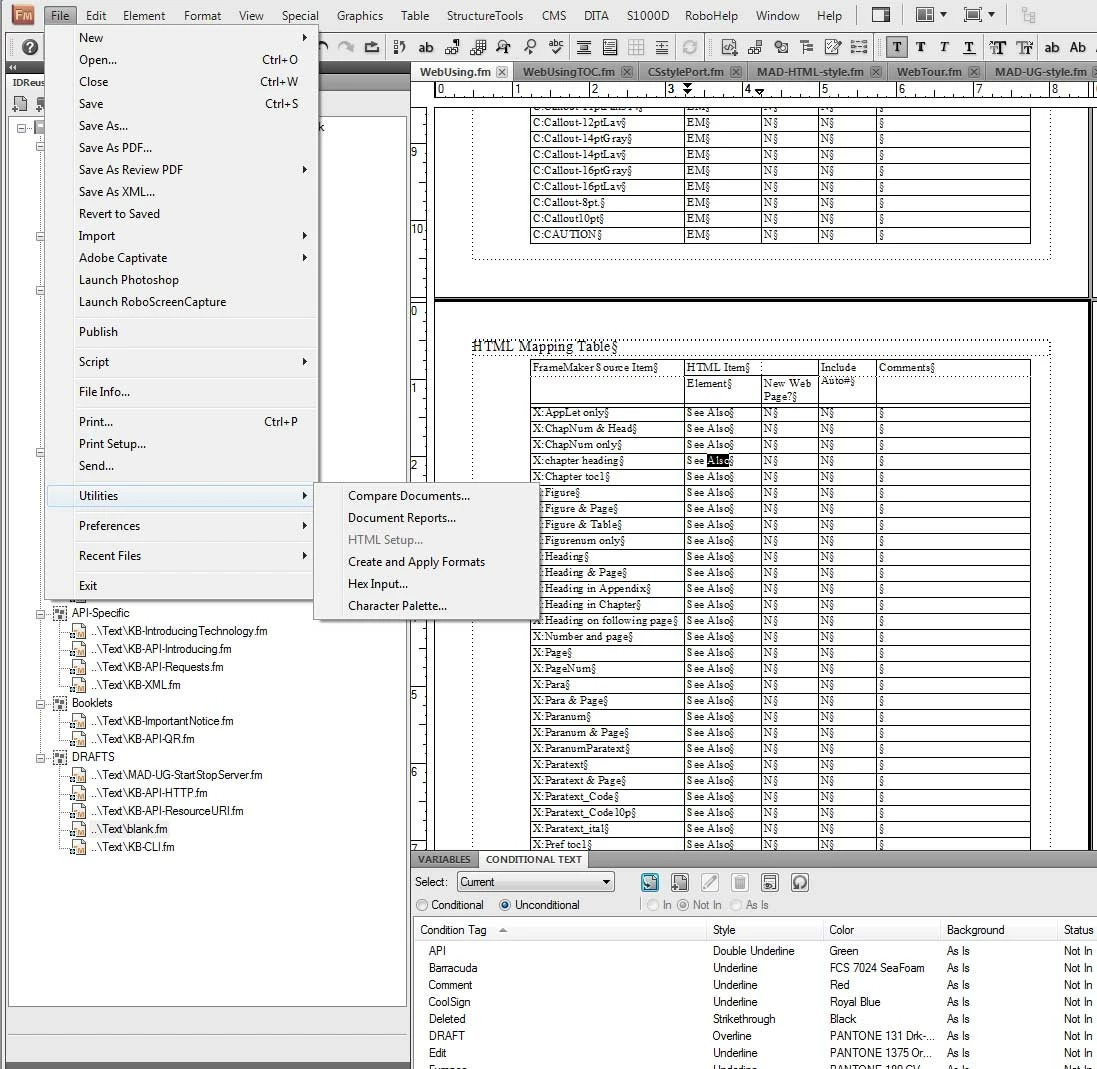 I open a chapter file in FM10. I select File > Utilities, but the HTML Setup... option is ghosted and not selectable. I thought maybe something was wrong with my file, so I tried using one of the sample files provided by Adobe. Still no good. What am I missing???