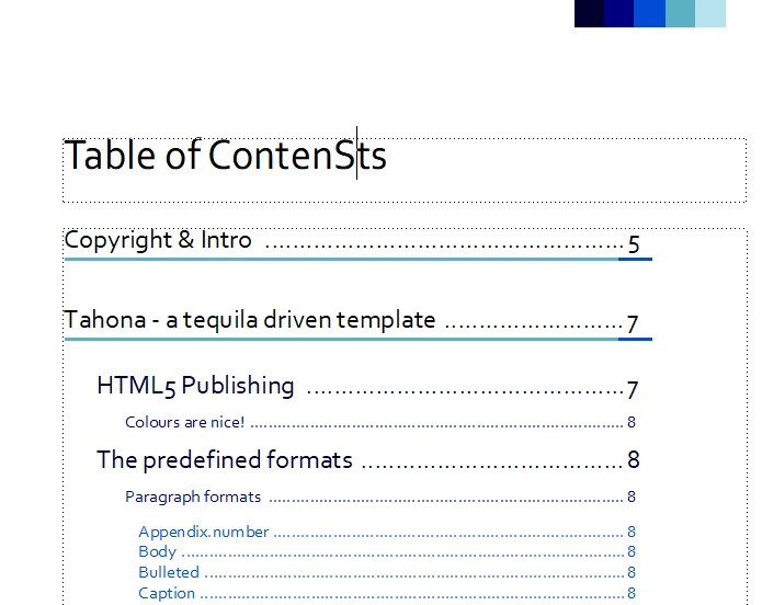 I created TOC and it was very ugly and primitive us usual, so I decided to import settings an other properties from a good TOC that I have on my hard-drive. The good TOC looks like that: