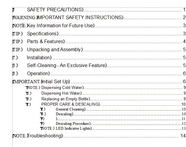TOC has extraneous words!