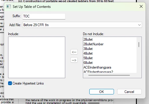 We've been doing several books with multiple documents in each book; up until now, TOC creation has been pretty easy; select the book, create standalone TOC, select which paragraph tags to include, and then apply or import formats, edit reference pages, etc. For whatever reason, the book we just finished pulls in all of the para tags we designate EXCEPT Level1Tag2, and it ONLY fails to do this when we try to make a TOC for the entire book. If we make separate standalone TOCs for each document in the book, each document TOC brings in the Level1Tag2 and includes it. It's only when we try to do the whole book that it fails. Every other tag we select gets pulled without problem.