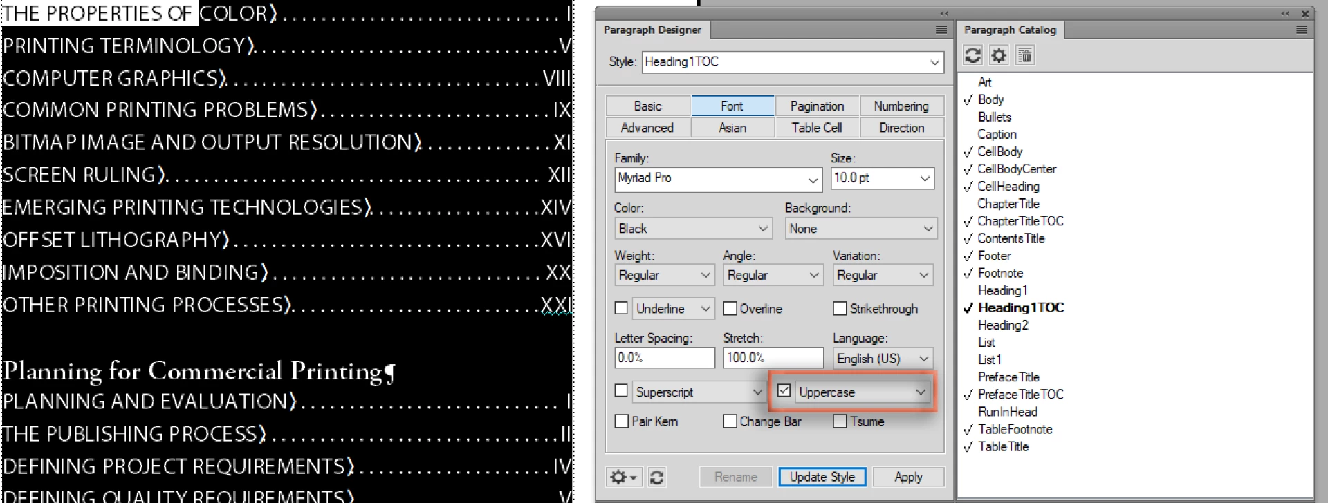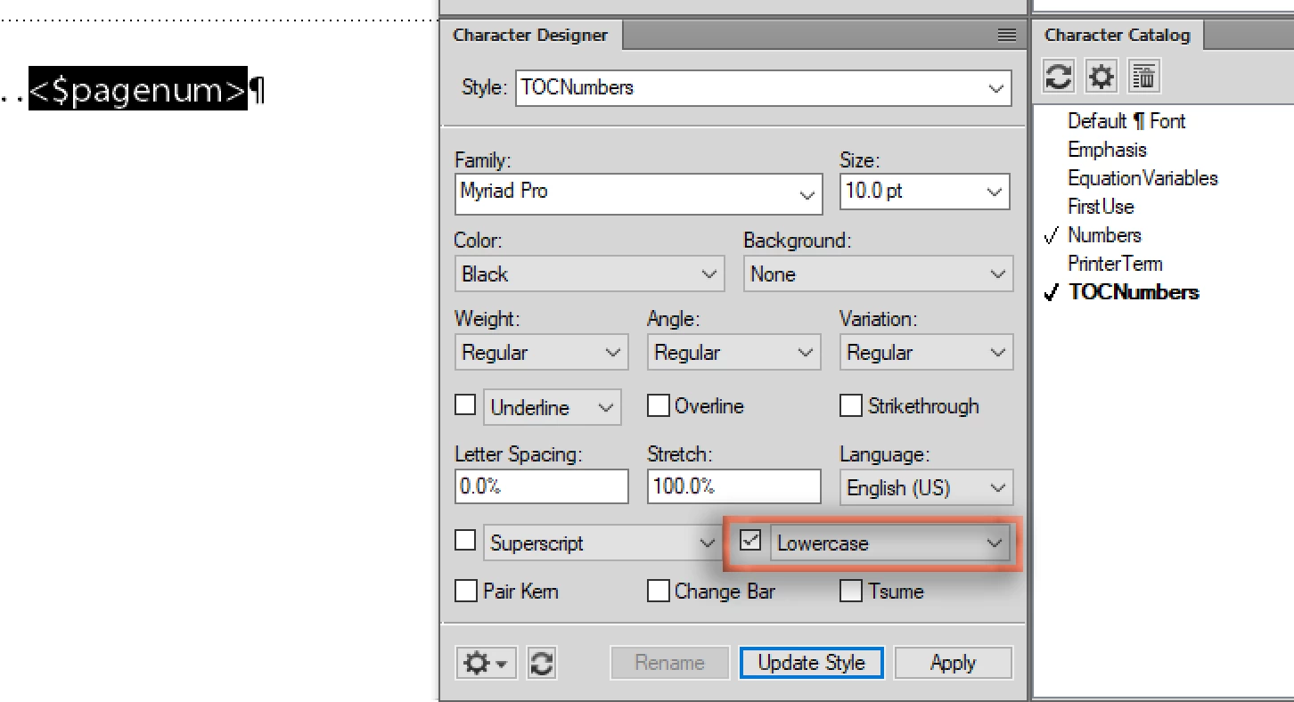 In the reference page, I have it set to show chapter number, paratext page number. The font was set to all caps, but I adjusted the page number to lowercase with the character designer. This did not solve the issue.