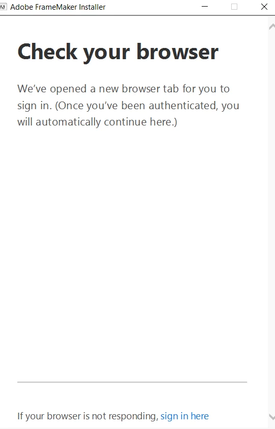 Trying to install Adobe FrameMaker 2022 but it gets stuck at below screen.